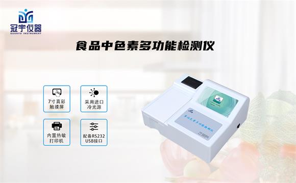 冠宇儀器食品色素多功能檢測(cè)儀能夠快速檢測(cè)蘇丹紅,靛藍(lán),亮藍(lán),檸檬黃,日落黃,胭脂紅,莧菜紅,誘惑紅,羅丹明B等多種色素含量,杜絕違法超限量添加現(xiàn)象。